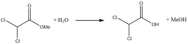 조(crude) 디클로로아세트산의 에스테르화를 통해 쉽게 얻을 수 있는 메틸 에스테르를 가수분해하면 매우 순수한 디클로로아세트산을 생산할 수 있습니다.