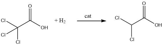 아울러, 팔라듐 촉매 하에서 수소를 이용하여 트리클로로아세트산 또는 에틸 트리클로로아세테이트를 선택적으로 탈염소화함으로써 디클로로아세트산과 에틸 디클로로아세테이트를 얻는 방법도 있습니다.