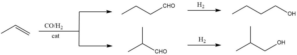 알데하이드의 촉매 수소화는 후속 단계로, 해당 알코올을 형성하게 됩니다. 2010년 기준 부탄올의 주요 생산 업체로는 BASF, Oxea Group, Dow Chemical Company 등이 있습니다.