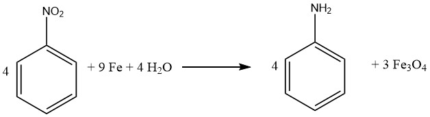 반응기에는 아닐린 증류에서 나온 아닐린수를 포함한 물, 철의 20%, 필요한 양의 촉매, 전체 니트로벤젠 피드의 약 5-10%가 채워집니다.