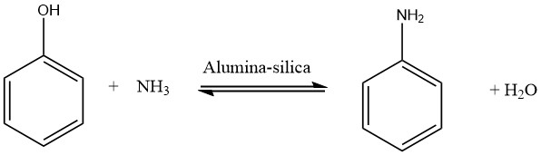 할콘(Halcon)은 실리카-알루미나 촉매와 함께 암모니아를 사용하여 기상에서 페놀을 아미노화하는 상업적 페놀 경로를 개발했습니다.